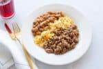 Deliciosa Carne Moída, Arroz Branco com Cenoura e Feijão. Com ingredientes fresquinhos, escolhidos a dedo para proporcionar uma alimentação saudável e muito nutritiva. Nosso prato é feito com coxão duro, arroz branco, feijão, cenoura, cebola, alho, azeite de oliva e sal marinho. Servido em uma porção de 300g.